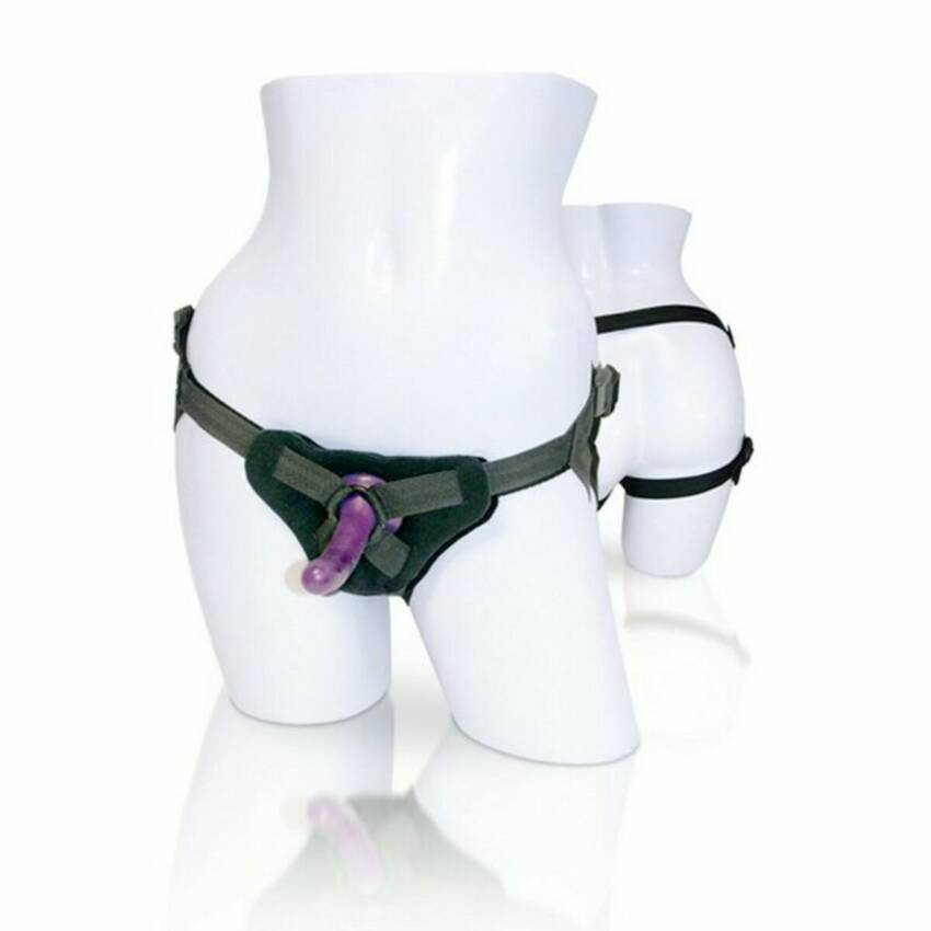 - Included: Harness + slim silicone dildo